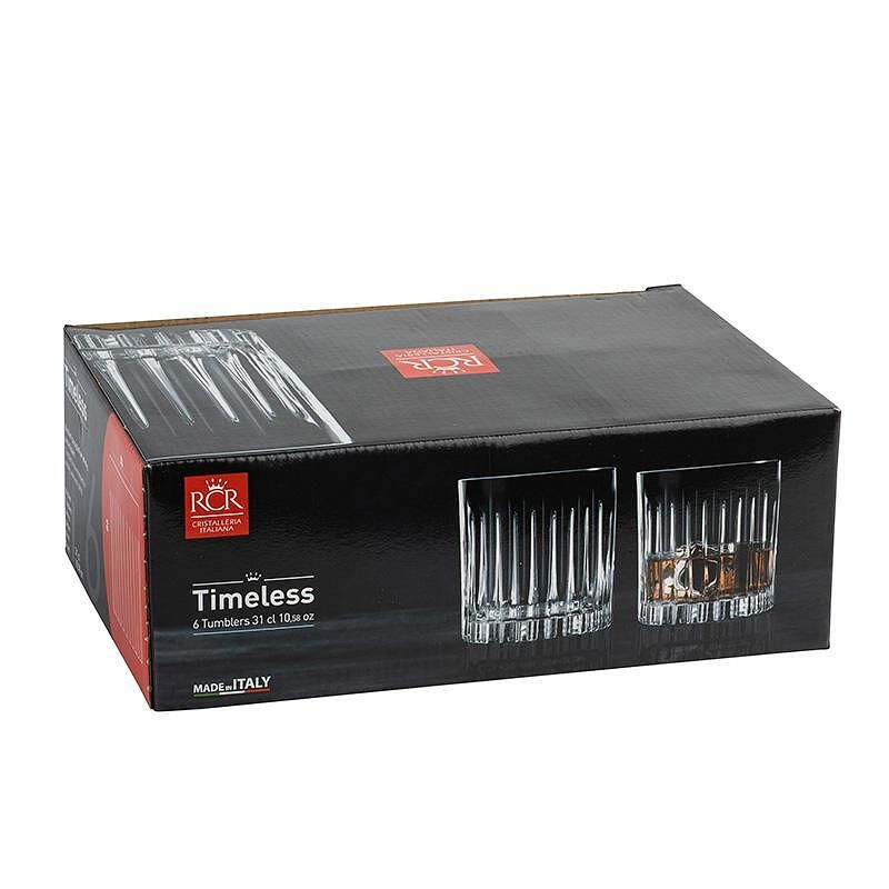 Комплектът от 6 чаши за ракия от престижната колекция Timeless съчетава фин италиански стил с модерен геометричен релеф. Създадени от висококачествен екологичен кристалин Luxion®, тези чаши впечатляват с кристална прозрачност и устойчивост на ежедневна употреба.