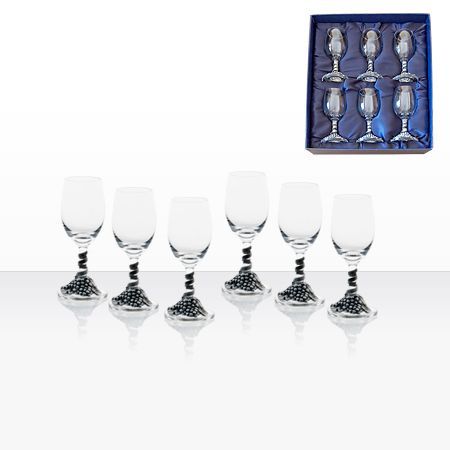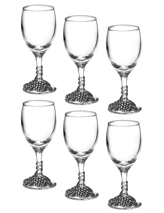 Детайлна декорация от сплав от калай и сребро във формата на грозд върху столчето на чашите .