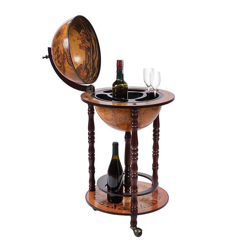 Глобус барът има две функции - като красив интериорен детайл и като мини бар за съхранение на бутилки.