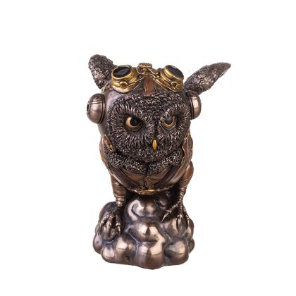 Потопете се в света на steampunk приключенията с тази изящна статуетка на бухал авиатор. Изработена с изключително внимание към детайла, тази полирезинова фигурка улавя духа на авиацията и инженерната изобретателност. С метално покритие, което придава автентичен вид, бухалът авиатор е готов да излети във вашия дом или офис.