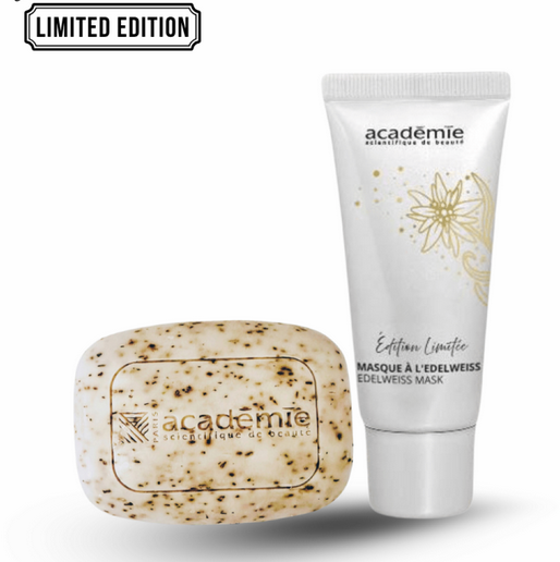 Ексклузивна маска с еделвайс и биоактивни съставки и сапун за лице и тяло от ACADEMIE в .комплект и на преференциална цена.