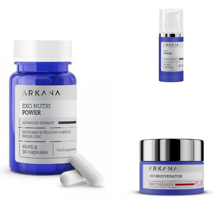 ARKANA - Комплект EXO POWER/ Комплекст екзозоми за пиене и екзозомен серум за лице