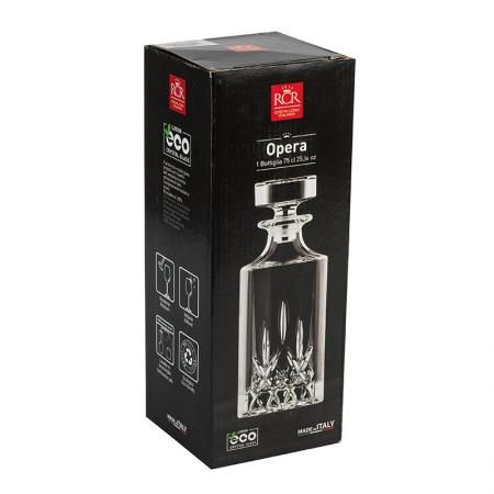 Бутилка: Ø 9 см. Височина: 18,8 см. Вместимост: 750 мл. Стилна бутилка за уиски, произведена от италианската фирма RCR Crystal, предназначена за истинските ценители на малцовата напитка. Подходяща за почистване в съдомиялна машина. Подарете си финес и красота на масата с италианско качество и изящен дизайн. Материал : кристалин 2,45 % плътност.