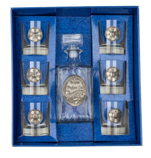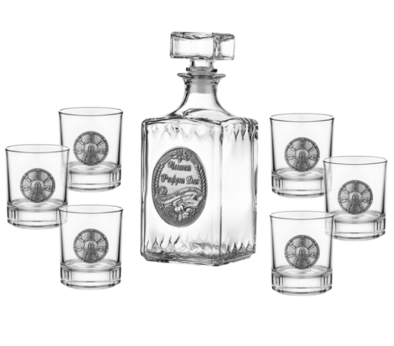 Височина бутилка 24 см, височина чаши 8,5 см.