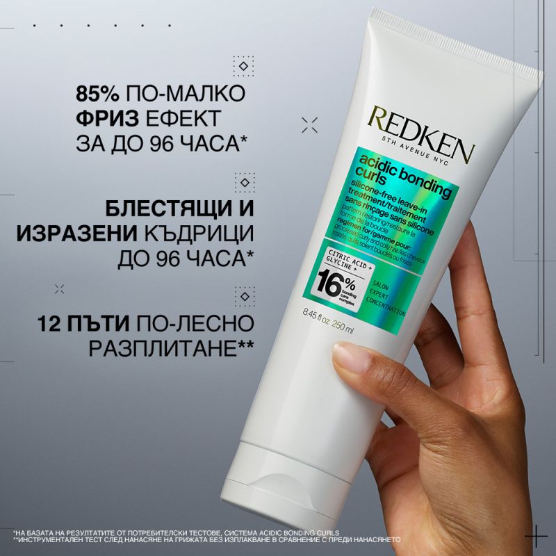 ***Грижа без изплакване Асіԁіс Bonding Curl в сравнение с класически шампоан. ****Инструментален тест след използване на грижа без изплакване.